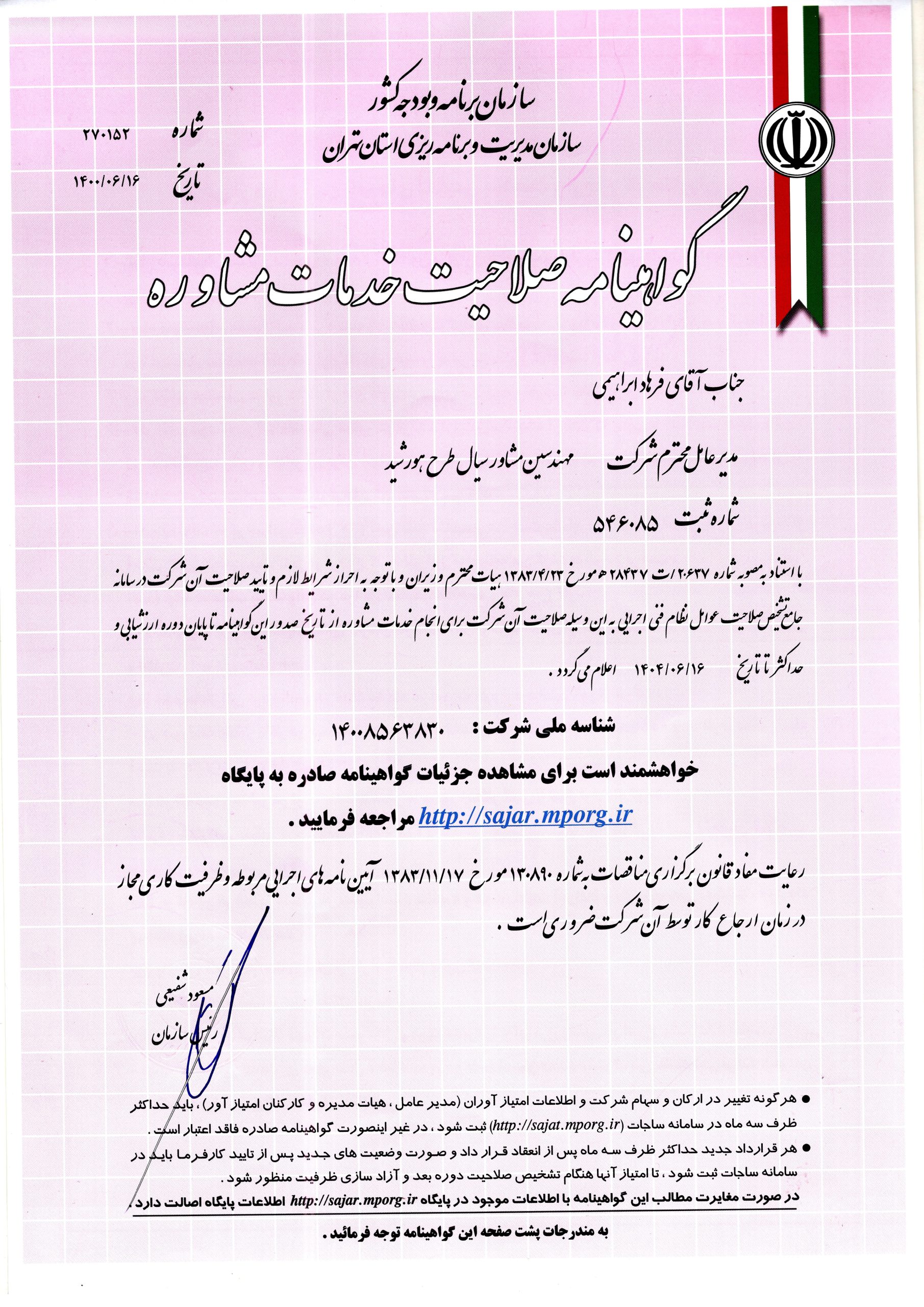 مهندسین مشاور سیال طرح هورشید